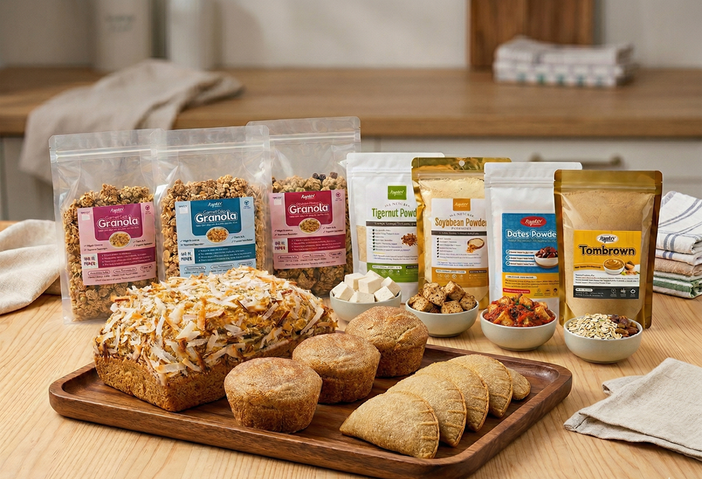 We sell healthy food products: cereals, pastries & sweeteners